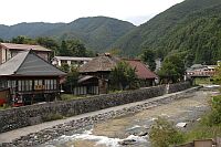 | 湯西川温泉 | 水陸両用車 | 温泉街 | 川沿い旧家 | 湯西川 |